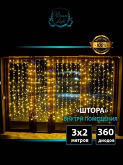 Гирлянда на окно 3х2 штора Теплый свет новогодняя