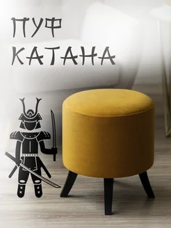 Пуфик горчичный для прихожей и спальни, круглый на ножках