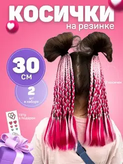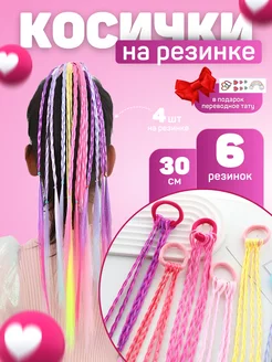 Цветные косички на резинке 2 штуки, канекалон, аксессуары