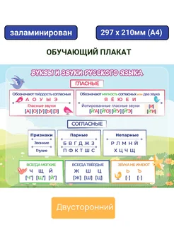 Обучающий плакат «Буквы и звуки русского языка» A4