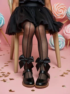 Нарядные колготки в сетку с бантиками для детей капроновые
