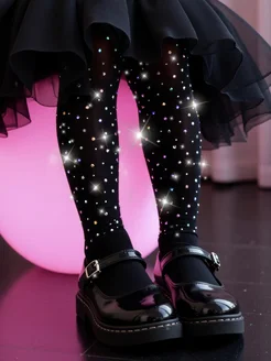 Нарядные колготки в сетку со стразами для детей капроновые