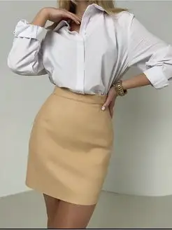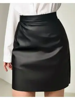 Юбка женская кожаная мини карандаш с разрезом сбоку