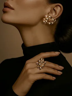 Серьги и кольцо бижутерия крупная под золото