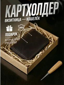 Мини кошелек картхолдер компактный подарочный кожаный