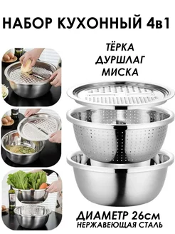 Кухонный набор дуршлаг терка миска нержавеющая сталь 26см