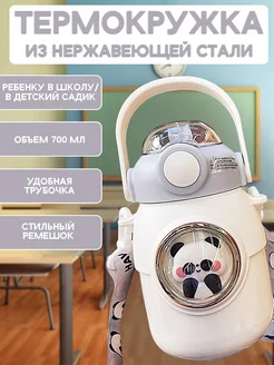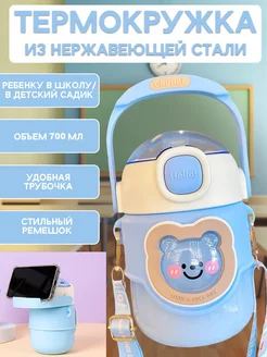 Термос с трубочкой и ремешком
