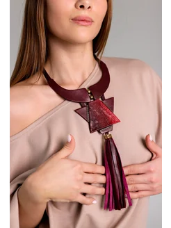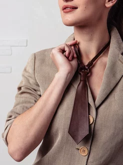 Галстук бабочка из кожи коричневый короткий и узкий школьный