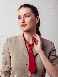 Дизайнерский кожаный галстук с цепями красный