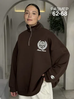 Свитшот оверсайз полузамок без начеса на молнии с принтом