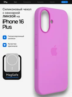 Силиконовый чехол MagSafe на iPhone 16 Plus сенсорная линза