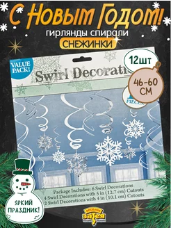 Новогодний декор подвесные спирали Снежинки 46-60см 12шт