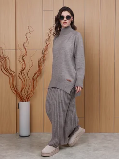 Свитер вязаный удлиненный оверсайз на зиму с горлом