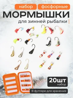 Мормышки для зимней рыбалки Уралка фосфорные набор 20 штук