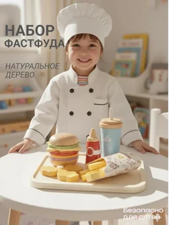 Игровой набор фаст фуда с бургером деревянный