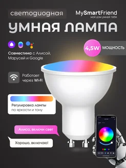 Умная лампочка Wi-Fi GU10 5W RGB работает с Алисой