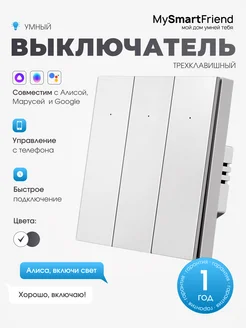 Умный выключатель трехклавишный работает с Алисой Яндекс