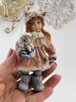 Украшение на елку ватная игрушка девочка