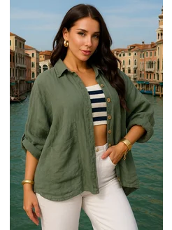 Рубашка летняя льняная оверсайз