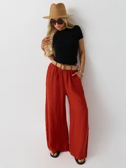 Брюки кюлоты палаццо льняные широкие