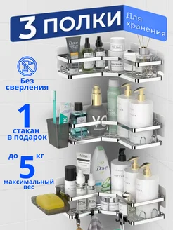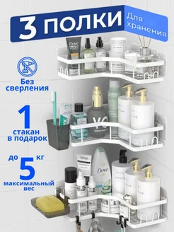Полка для ванной настенная угловая 3шт