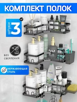 Полка для ванной без сверления угловая настенная навесная