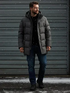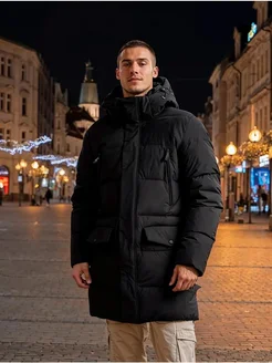 Пуховик зимний удлиненный с капюшоном куртка