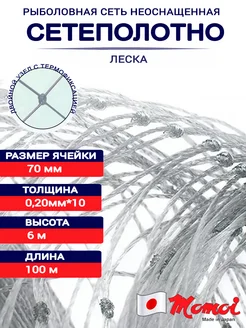 Сетеполотно скр.леска 0,20мм*10, яч. 70мм, высота 6,0м