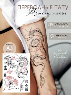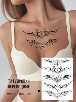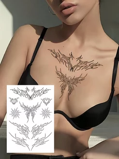 Тату переводные временные А5 трайбл, крылья, узоры, чб