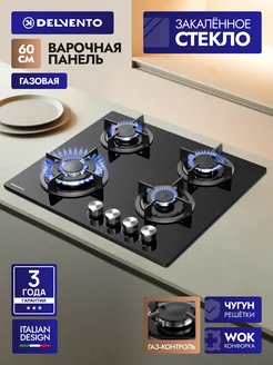 Газовая варочная панель 60 см, стекло, газ-контроль, WOK