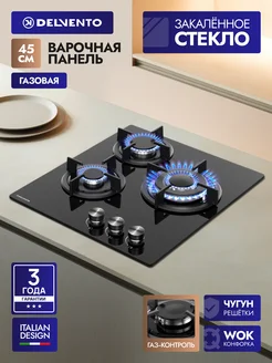 Газовая варочная панель 45 см, стекло, газ-контроль, WOK