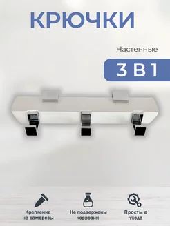 Вешалка настенная с крючками для ванной 3 в 1