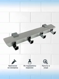 Вешалка настенная с крючками для ванной 4 в 1
