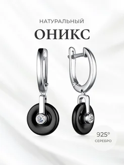 Серьги серебро 925 c 2 ониксами и 2 фианитами