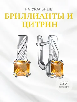 Серьги серебро 925 c 2 цитринами и 2 бриллиантами