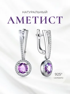 Серьги серебро 925 c 2 аметистами и 24 фианитами