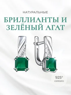 Серьги серебро 925 c 2 агатами и 2 бриллиантами