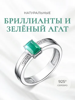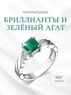 Кольцо серебро 925 c агатом и 2 бриллиантами