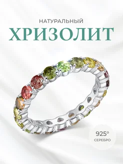 Кольцо серебро 925 с хризолитом и 21 фианитом дорожка