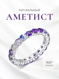 Кольцо серебро 925 с аметистами и фианитами дорожка