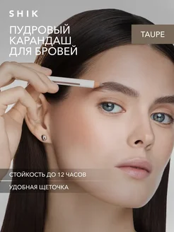 Пудровый карандаш для бровей с щёточкой, SHIK - Taupe