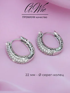 Серьги кольца со стразами бижутерия