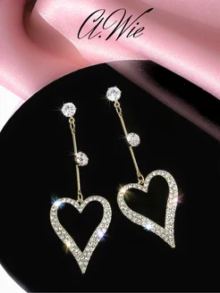 Серьги бижутерия висячие длинные сердечки