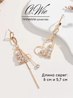 Серьги бижутерия асимметричные длинные сердечки