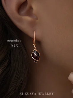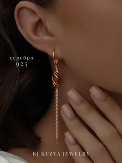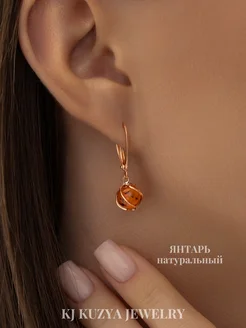 Серьги серебро 925 с натуральным янтарем
