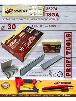 Скобы строительного степлера 30 мм 18GA 2500шт Skrab 35274