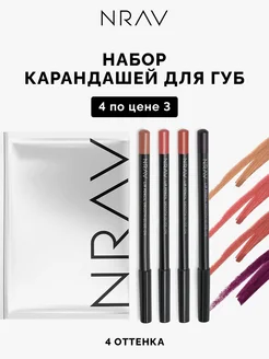Набор карандашей для губ, матовые, 4 шт