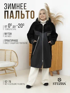 Дубленка искусственная с капюшоном большие размеры