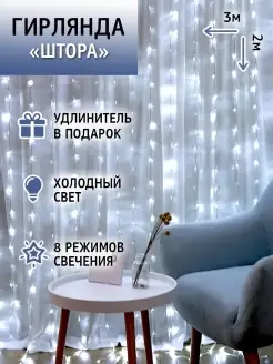 Гирлянда светодиодная занавес 3x2 штора новогодняя холодный…