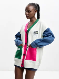 кардиган оверсайз на пуговицах с джинсовыми вставками